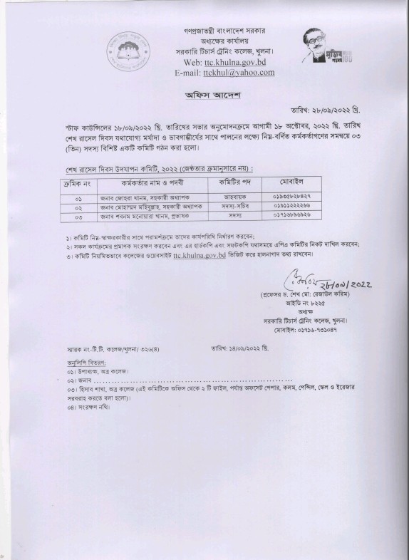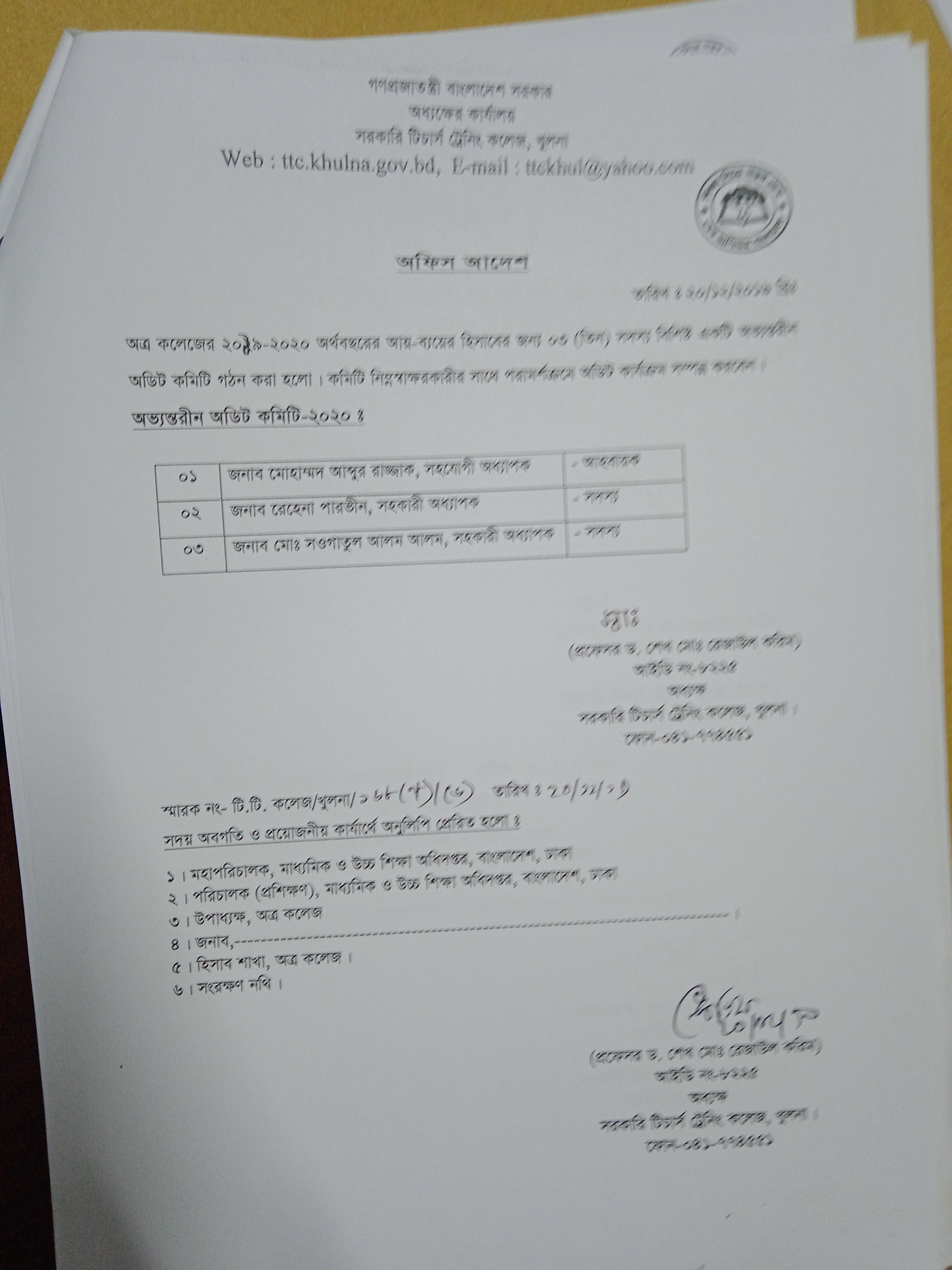 বিভিন্ন কমিটি, ২০২১-২-২২,টিটিসি, খুলনা