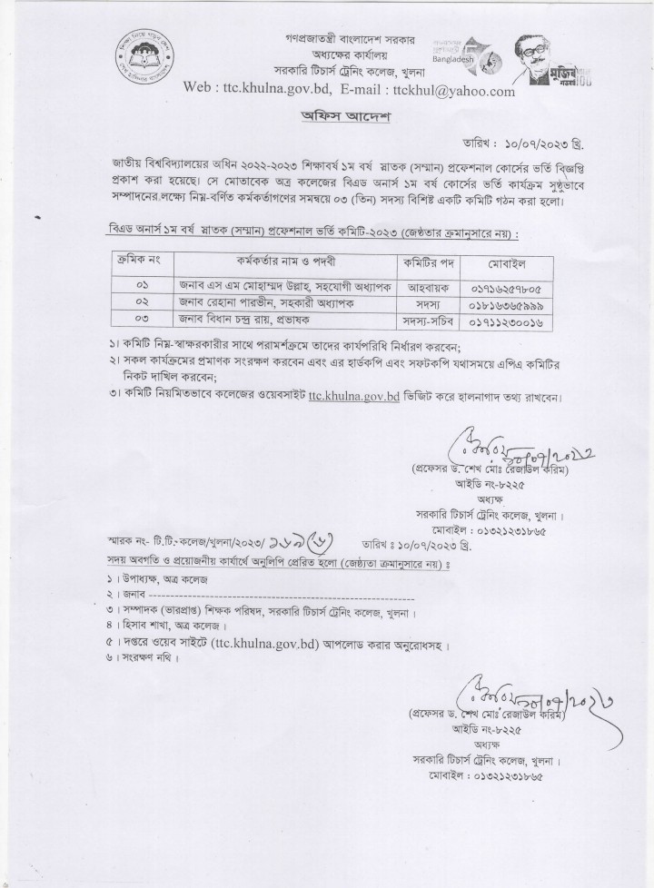 ২০২১-২০২২ বিএড অনার্স ভর্তি কমিটি