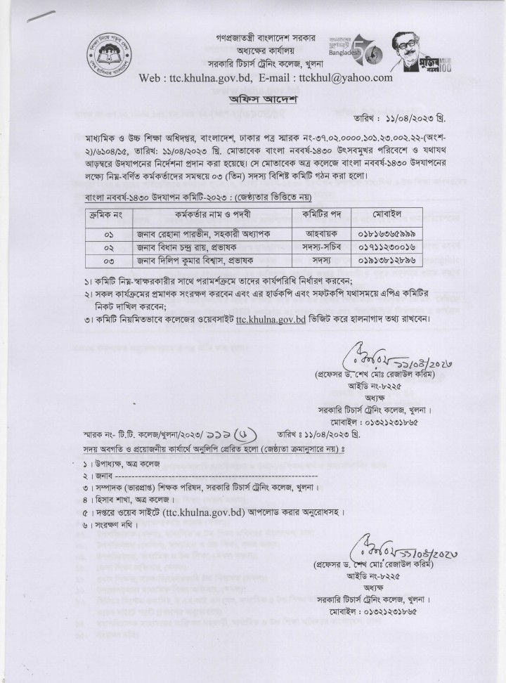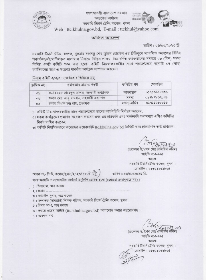 বিভিন্ন কমিটি, ২০২২-২০২৩,টিটিসি, খুলনা