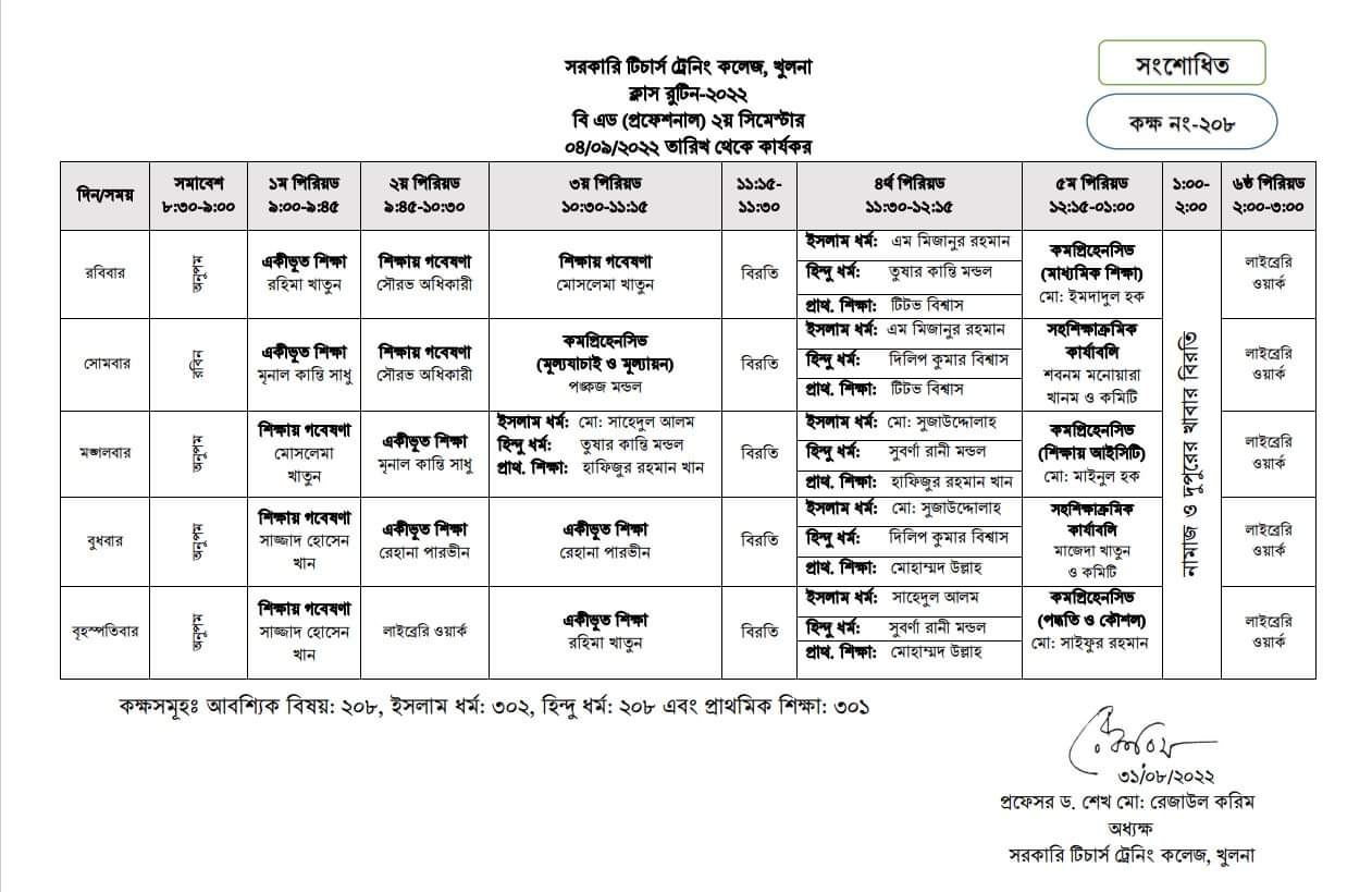 বিএড-১ম সেমিস্টার-২০২৩ ক্লাস রুটিন