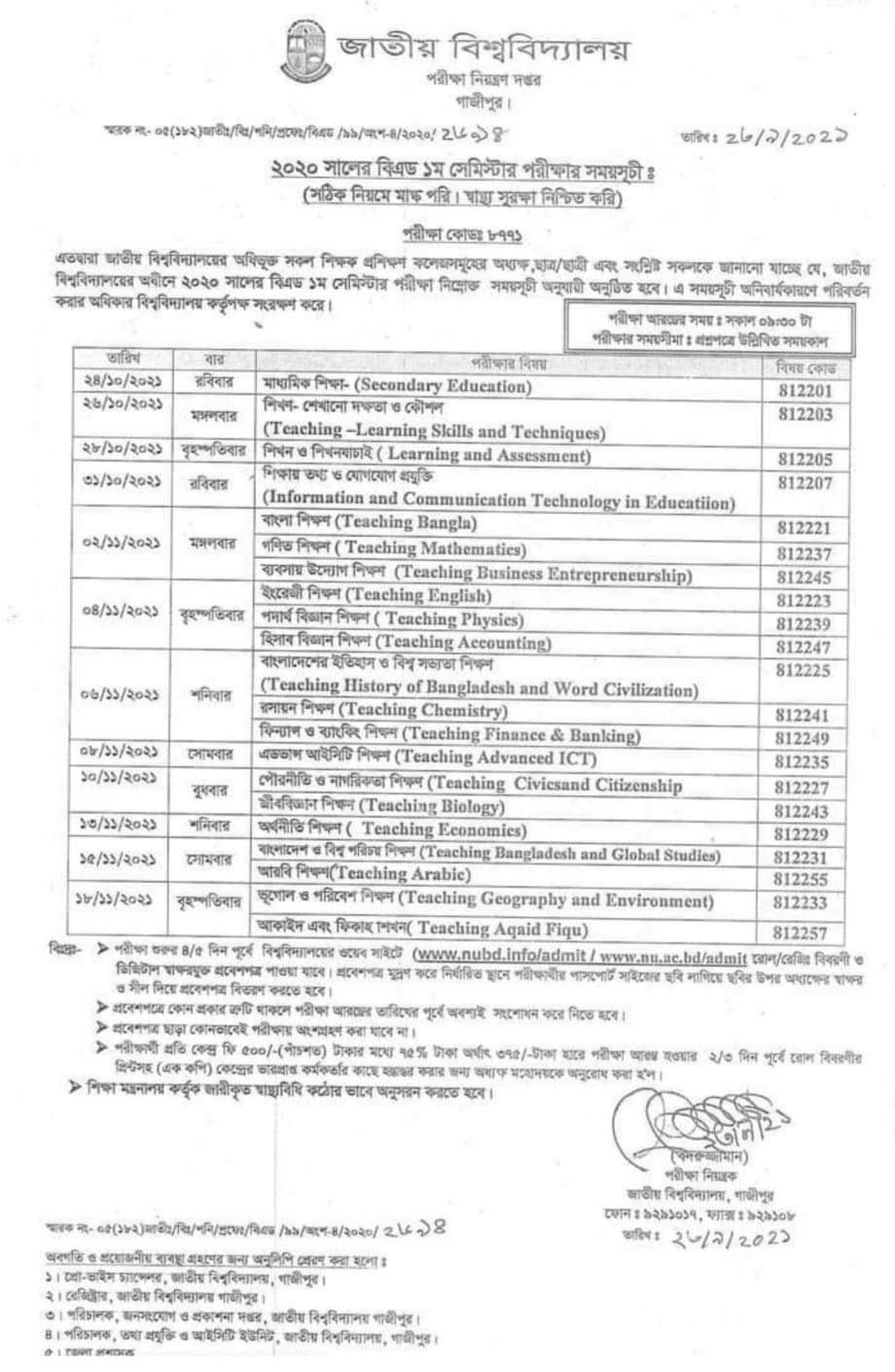 বর্ধিত পাঠদান অনুশীলন নোটিশ, বিএড-১ম সেমিস্টার ২০২১