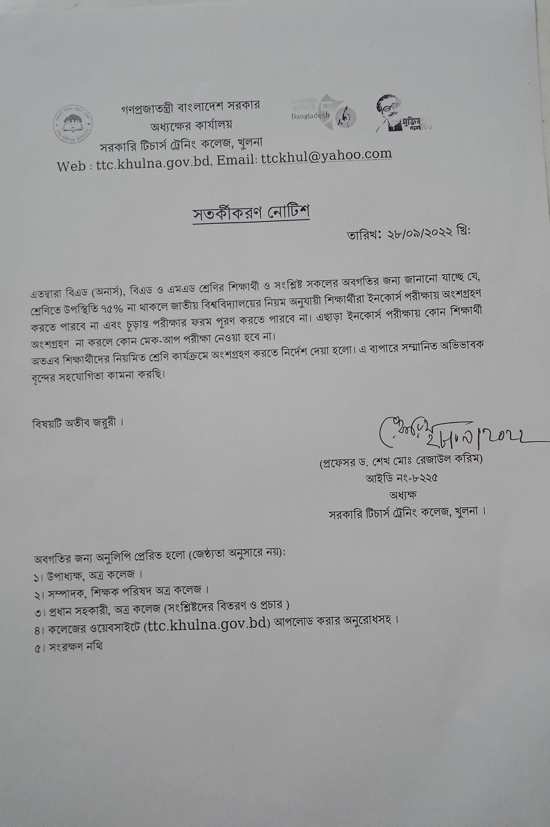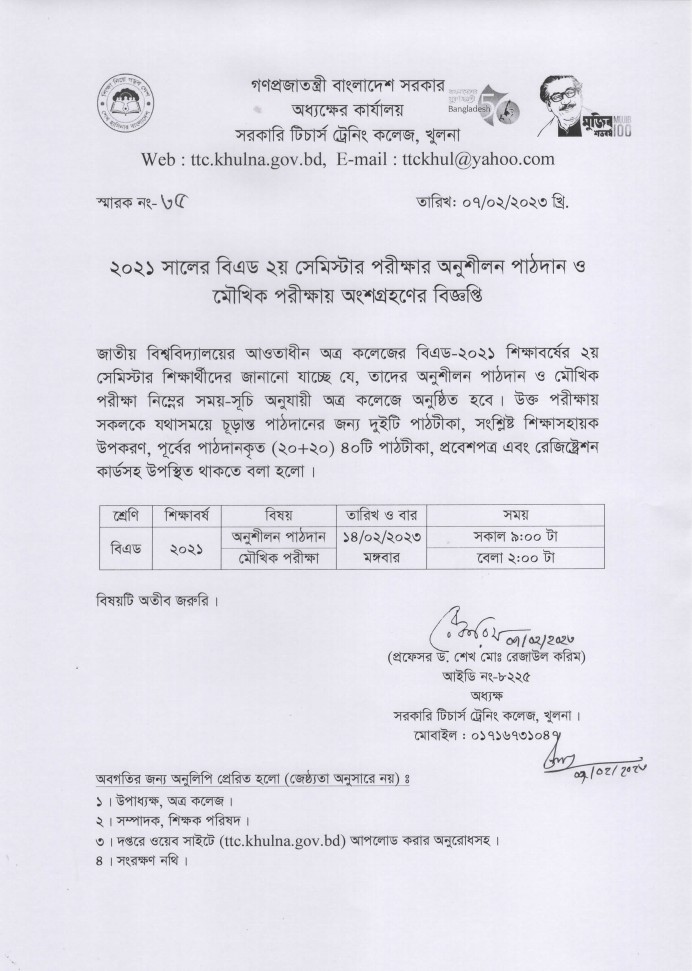 বিএড- ২য় সেমিস্টার -২০২১ এর পাঠদান অনুশীলনের সিমুলেশন ক্লাস নোটিশ