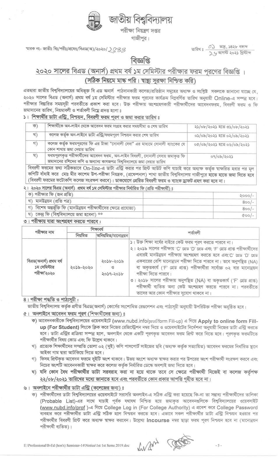জাতীয় বিশ্ববিদ্যালয়ের ২০২০ শিক্ষাবর্ষের বিএড ও এমএড ২য় সেমিস্টার ফরম পূরণ বিজ্ঞপ্তি