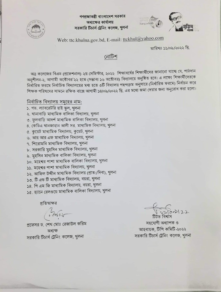 পাঠদান অনুশীলন নোটিশ,বিএড-১ম সেমিস্টার ২০২১
