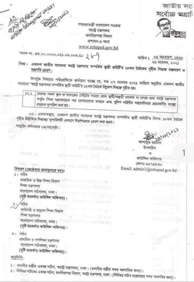 কলেজ প্রাচীর সংলগ্ন দোকানপাট অপসারণ নিয়ে স্থায়ী কমিটির সিদ্ধান্ত বাস্তবায়নে মাউশি প্রেরিত পত্র