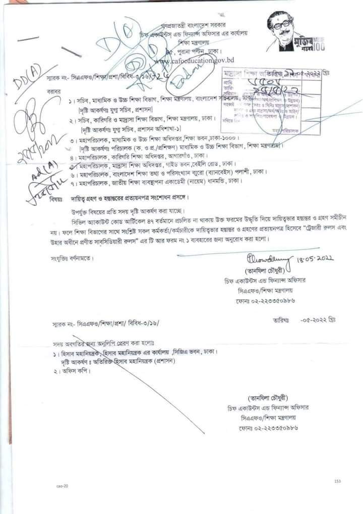 কর্মকর্তাদের স্তরভিত্তিক ক্লাস বন্টনের আদেশ