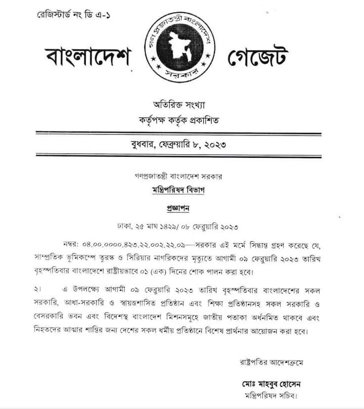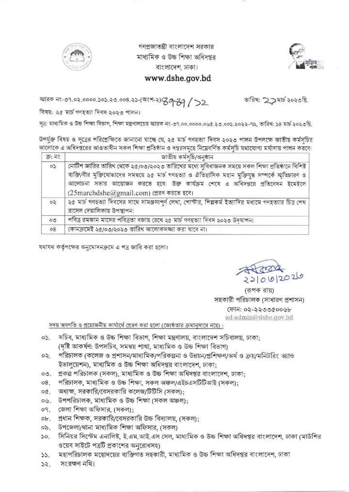 জাতীয় শোক দিবস পালনের নির্দেশনা।