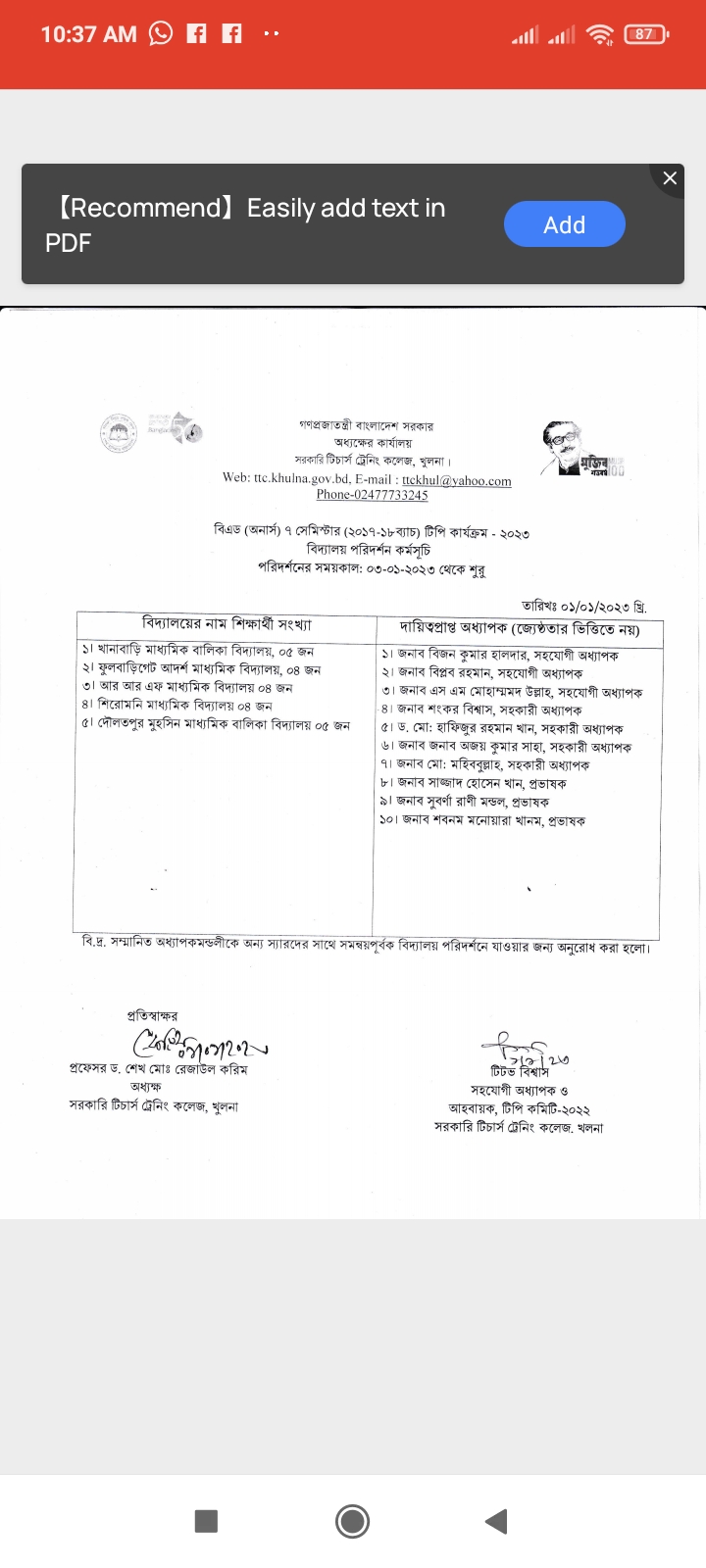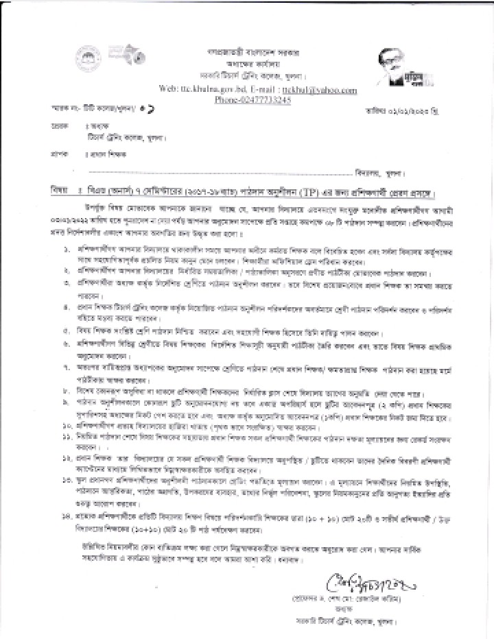 পাঠদান অনুশীলন(TP) বিএড (অনার্স) ৭ম সেমিস্টার-২০২১ নোটিশ ও রুটিন