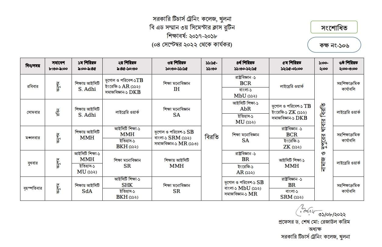বিএড অনার্স- ৪র্থ সেমিস্টার রুটিন